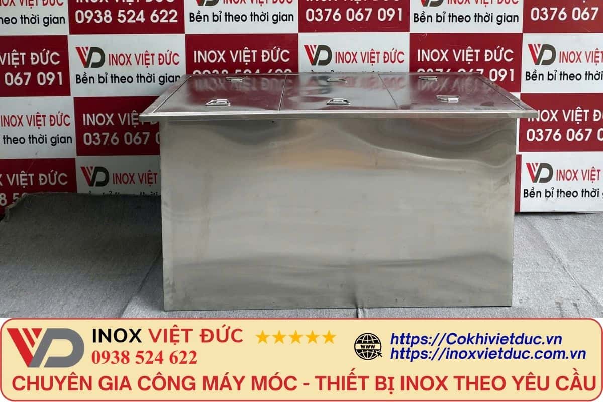 Hộp tách mỡ 550L – Inox Việt Đức là thiết bị lọc tách dầu mỡ và cặn rác trong nước thải bếp ăn, giúp giảm tắc ống, chống mùi, bảo vệ hệ thống thoát nước.